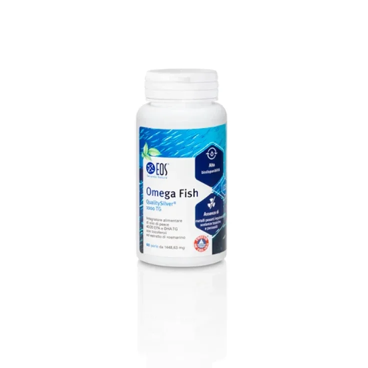 Eos Omega Fish è un integratore alimentare di olio di pesce 40/20 EPA e DHA TG con tocoferoli e estratto di rosmarino.