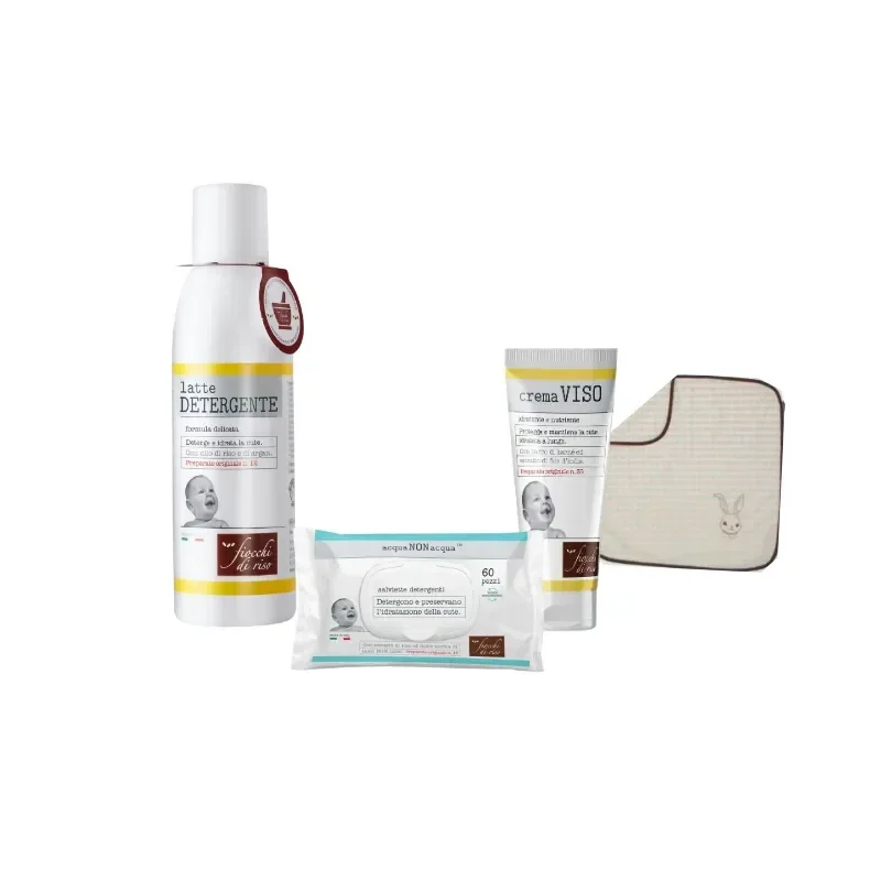 Fiocchi di Riso Cofanetto Relax Latte Detergente 140 ml + Crema Viso 30 ml + Salviette Detergenti 60 Pz